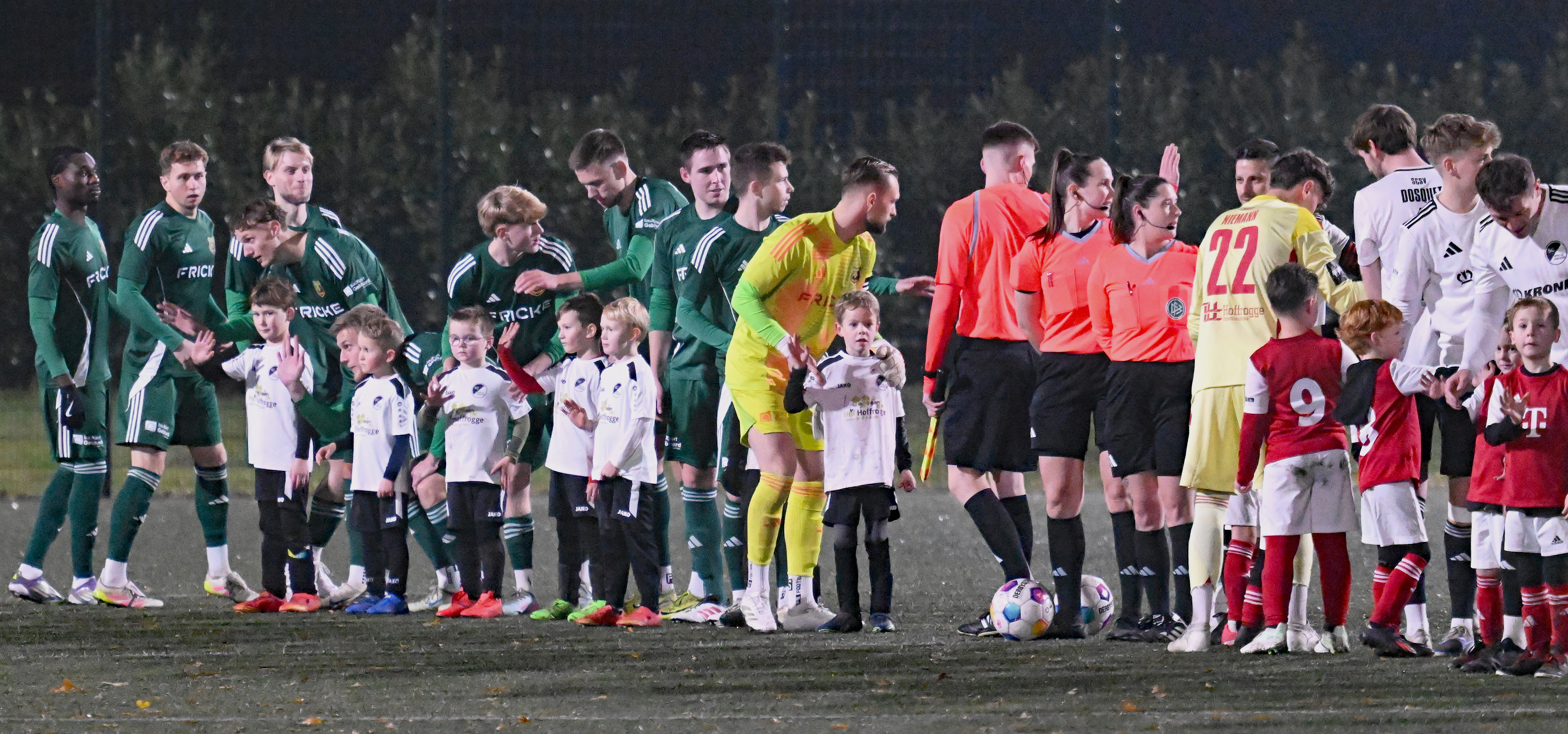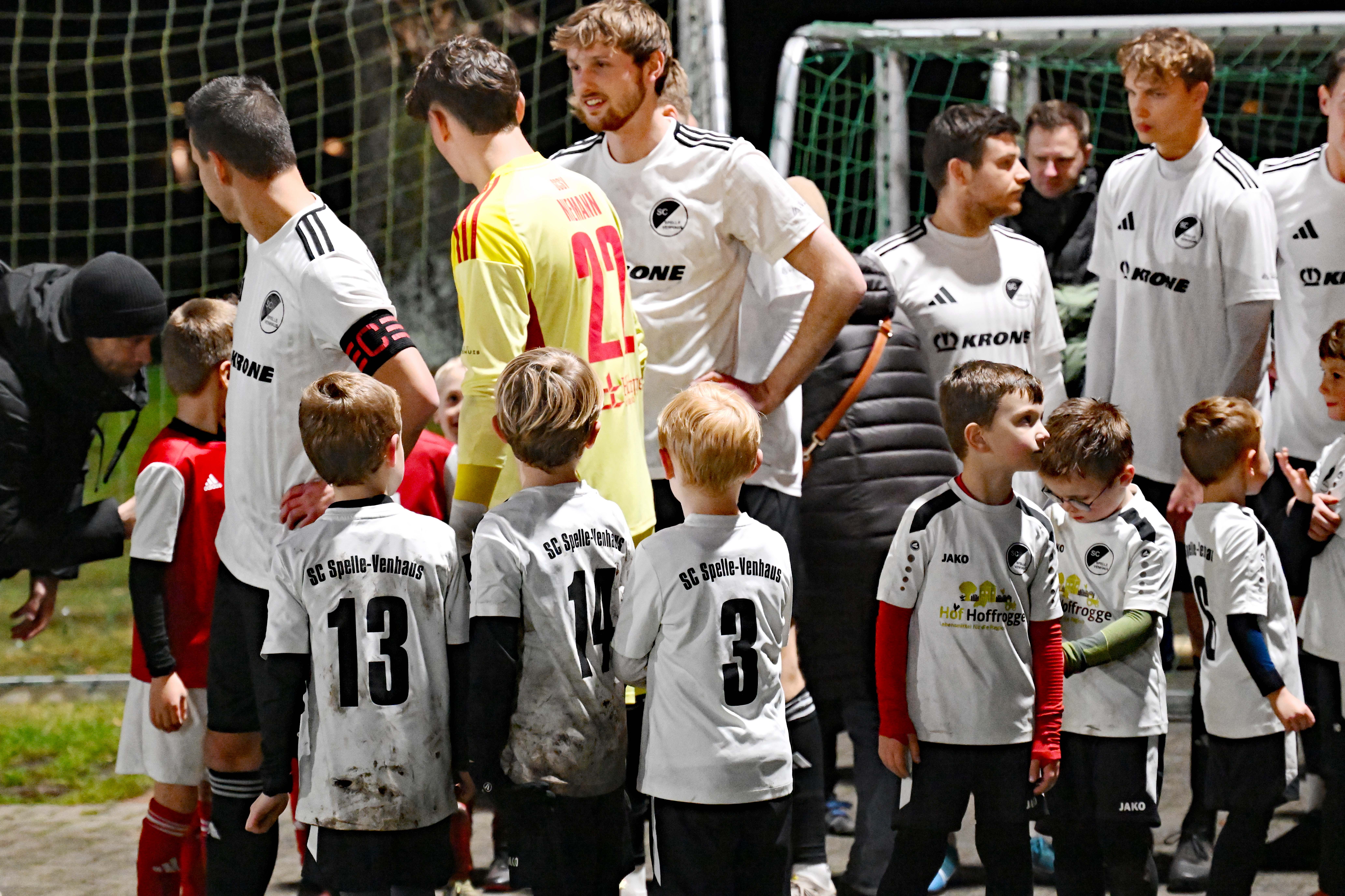 Die Minikicker des FC Eintracht Rheine und des SC Spelle-Venhaus hatten beim Heimspiel des SCSV gegen den Heeslinger SC ihren großen Auftritt. Sie begleiteten die Mannschaften der niedersächsischen Oberligisten vom Spielfeldrand bis zum Mittelkreis und durften sich über den Beifall der Zuschauer freuen. Der Gastgeber feierte beim 6:2 auf Kunstrasen den zweithöchsten Saisonsieg.
