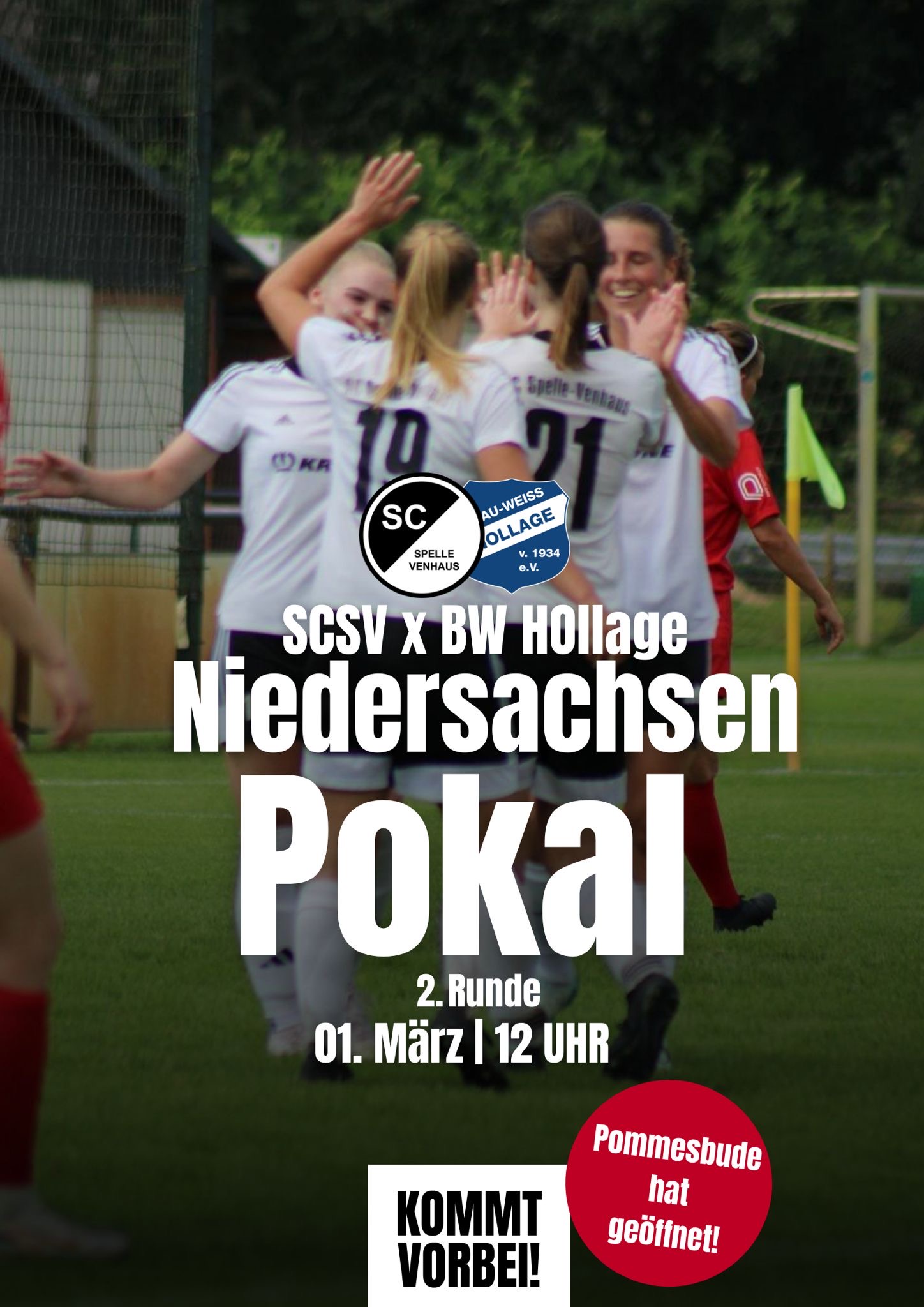 Sonntag (01.03.) startet die 1. Damenmannschaft mit dem NFV-Pokal, dessen Gewinn zur Teilnahme am DFB-Pokal berechtigt, in die Rückrunde. Dabei erwartet das Team von Rahel Mehring und Maria Frohberg einen echten Kracher. Mit den Damen von BW Hollage kommt ein langjähriger Oberligist, der als Favorit in die Partie geht. Gegen die klassenhöhere Mannschaft wollen die Damen alles geben und versuchen in die nächste Runde einzuziehen.