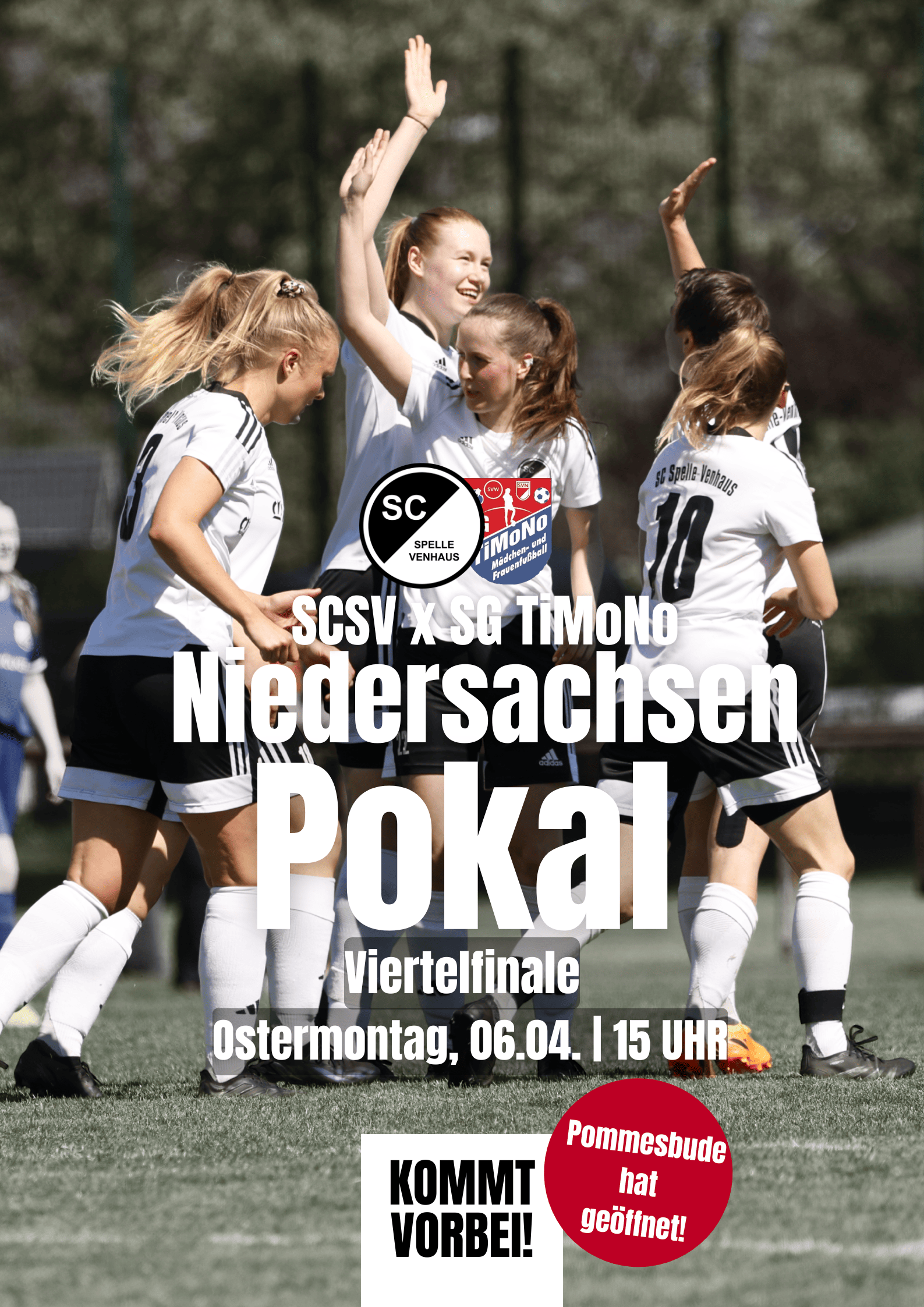 Ostermontag (06.04.) spielt die 1. Damenmannschaft im Viertelfinale des NFV-Pokals, dessen Gewinn zur Teilnahme am DFB-Pokal berechtigt, gegen den Oberligaspitzenreiter SG TiMoNo. Das Team aus Ostfriesland hat seit über einem Jahr kein Oberligaspiel mehr verloren und in dieser Saison 49 von 51 möglichen Punkten geholt.