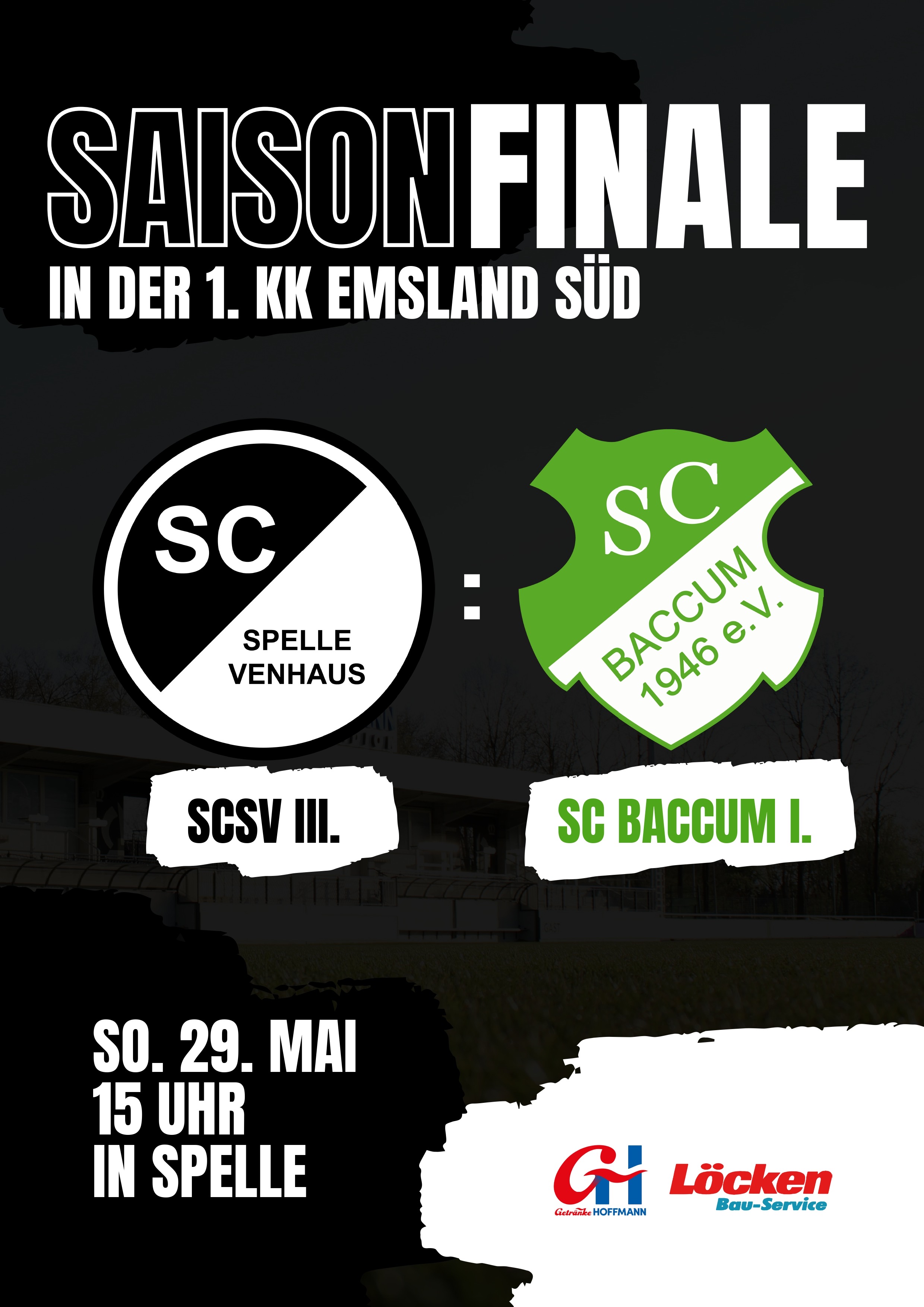 Am Sonntag ist es soweit, das Saisonfinale um die Meisterschaft in der 1. KK Emsland Süd steht auf dem Plan. Also liebe Speller/innen, kommt vorbei und unterstützt unsere "Dritte" im letzten Spiel gegen den SC Baccum. Anstoß ist am Sonntag den 29.05.2022 um 15:00 Uhr im Getränke Hoffmann Stadion.