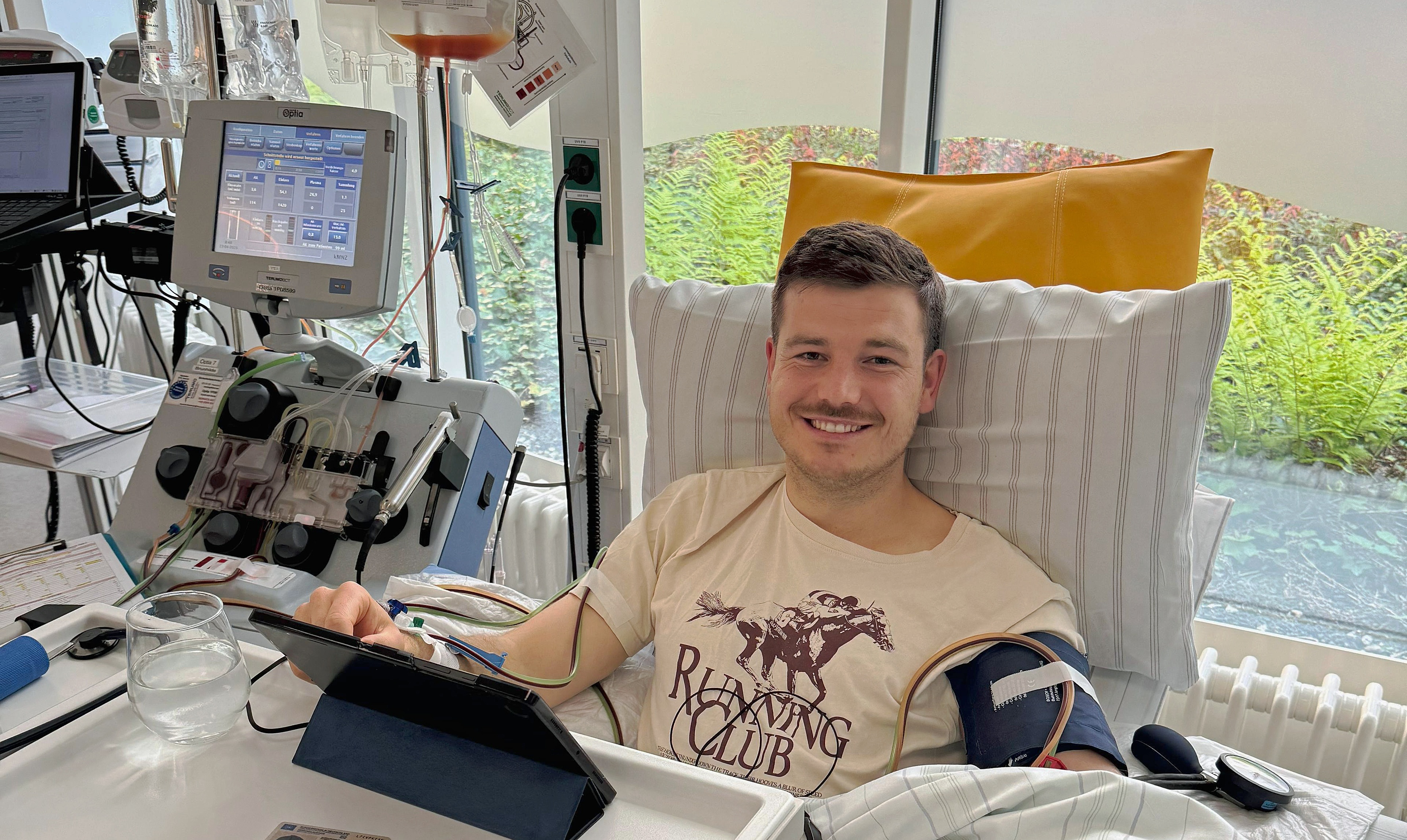 Das Foto zeigt Marvin Kehl vor der Stammzellspende in Dresden.