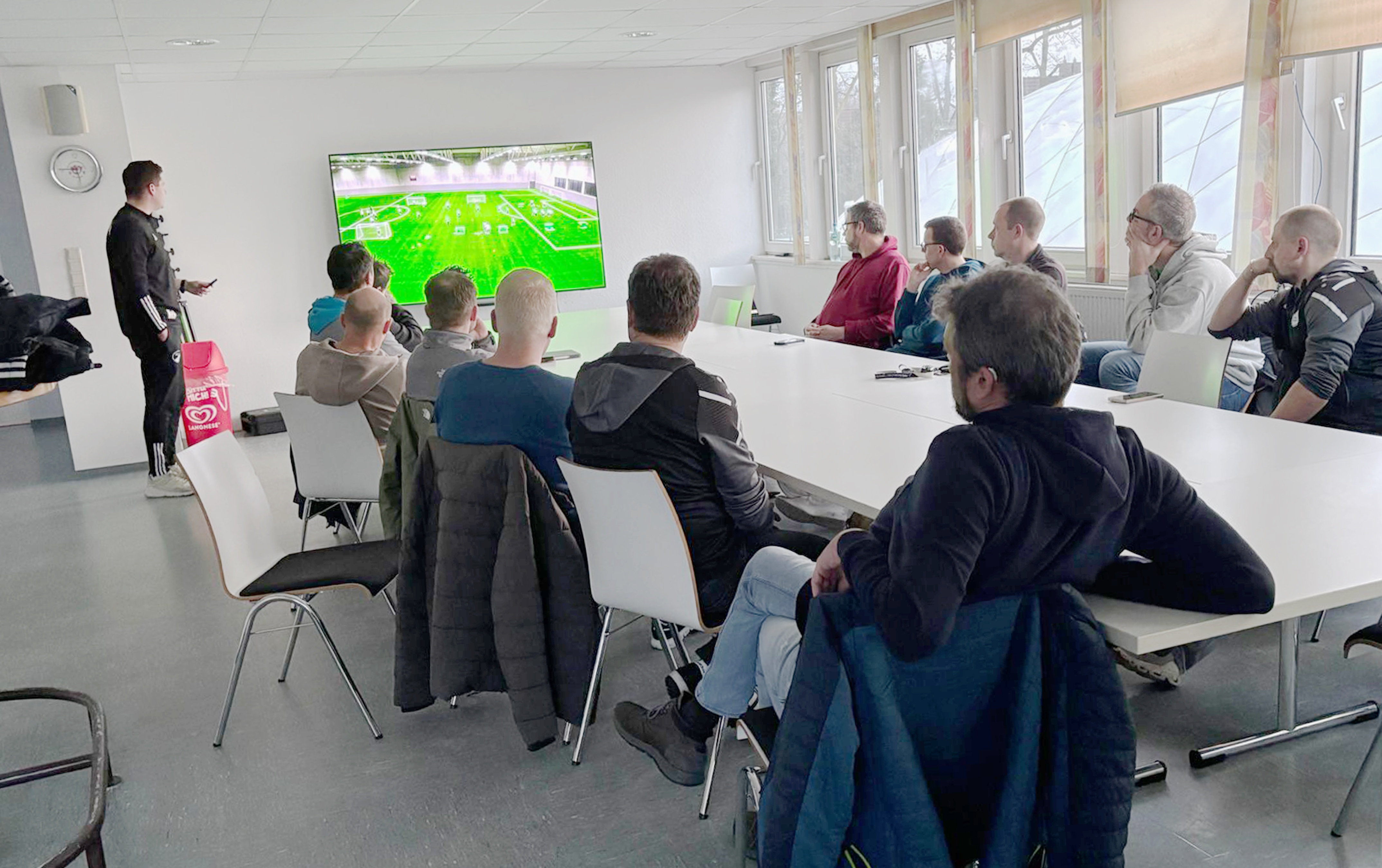Bei der Fortbildung der Trainer der Leistungsteams von der U13 bis zur U19 waren die Themen etwa das Spiel im letzten Drittel, Strafraumbesetzung, Spiel über außen. Gewünscht hatten die Jugendtrainer das Thema Spielaufbau. Im Oktober hatte ein erster Traineraustausch zwischen den Coaches der Oberliga-Mannschaft und den Verantwortlichen der Jugend-Leistungsteams stattgefunden. Die Resonanz war ausgesprochen positiv, eine Fortsetzung ausdrücklich erwünscht.