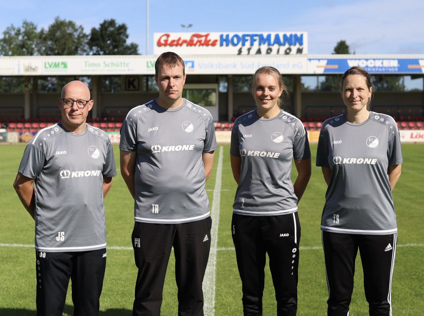Mit Beginn der Vorbereitung für die neue Landesliga Saison hat sich das TrainerInnen-Team der 1. Damen Fußballmannschaft verändert. Neben Jörg Seifert und Peter Hofschröer, die weiterhin unterstützend tätig bleiben, komplettieren Rahel Mehring und Maria Frohberg das Team gemeinsam in leitender Funktion. Die beiden B-Lizenzinhaberinnen sind die absolute Wunschlösung von Verein und Mannschaft.