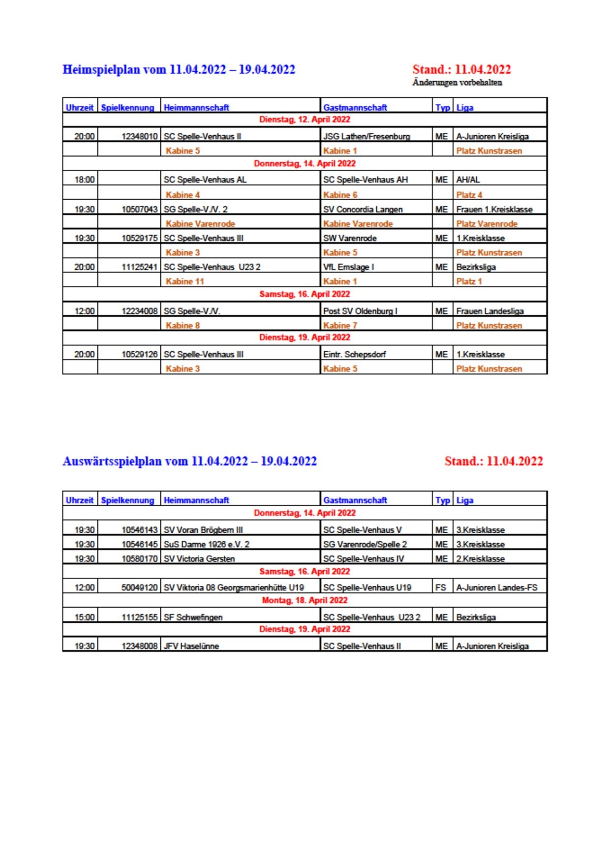 der 22.igste Wochenspielplan ist online. Besucht unsere Spiele in der Osterwoche und unterstützt die Mannschaften auf dem Platz.
