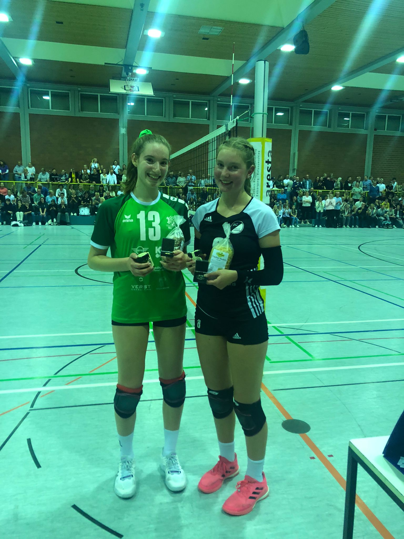 Johanna Haarmann und Jana Holtel sicherten sich die MVP-Auszeichnungen und freuen sich über das kulinarische Präsent vom Hof Hoffrogge, für das wir uns ganz herzlich bedanken! Mit Luisa Haking, Emma Neugebauer und Paula Tenkleve standen erneut Nachwuchsspielerinnen aus der eigenen Dritten (Bezirksliga) im Kader.