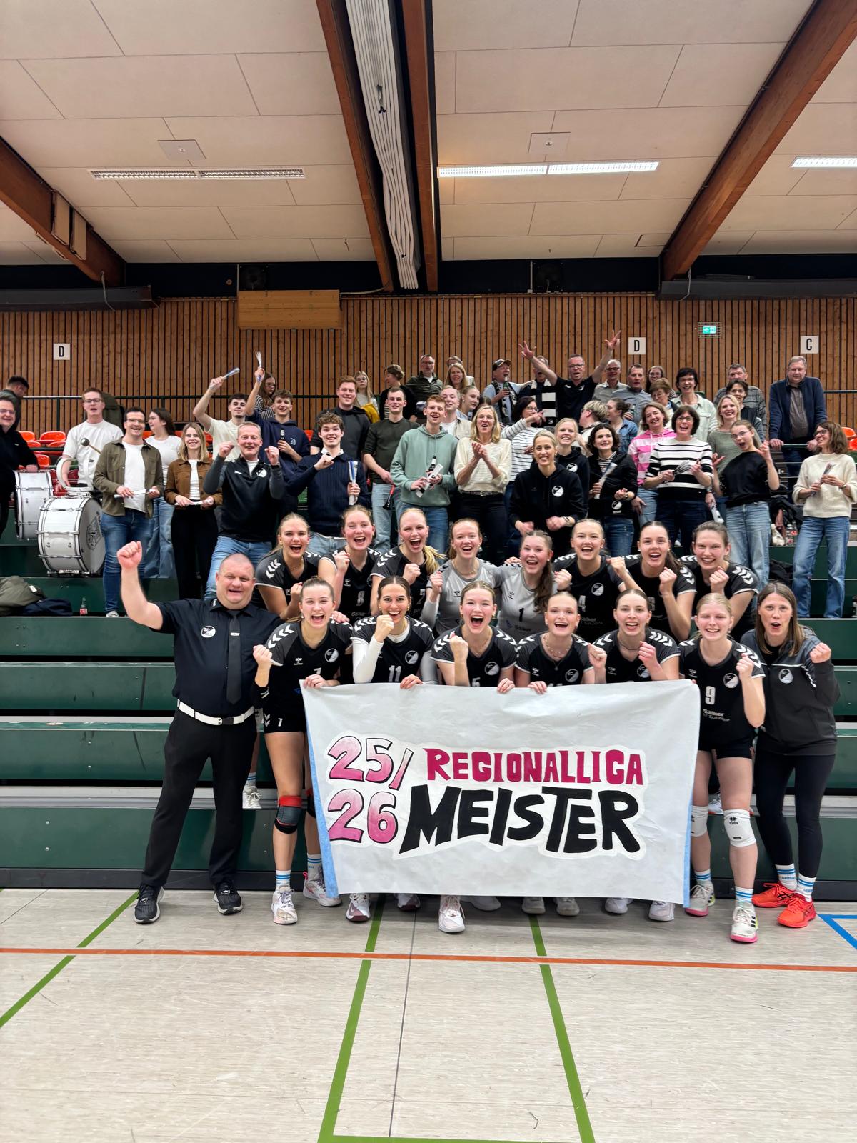 16 Spiele, 15 Siege, 47:17 Sätze und 41 Ligapunkte: nach knapp 2 Stunden heißem Kampf um jeden Punkt war es am Samstagabend um 22:25 Uhr endlich soweit. Mit den 3 entführten Punkten liegen die SCSVlerinnen zwei Spieltage vor Saisonende uneinholbar auf Platz 1 der Regionalligatabelleund krönen ihre Leistung in dieser Saison, als auch die harte Arbeit der letzten Jahre mit dem Aufstieg. Die gut 50 mitgereisten Fans verwandelten bereits das Match in ein Heimspiel und ließen die Mannschaft nach dem Spiel unter tosendem Beifall und stehenden Ovationen hochleben.