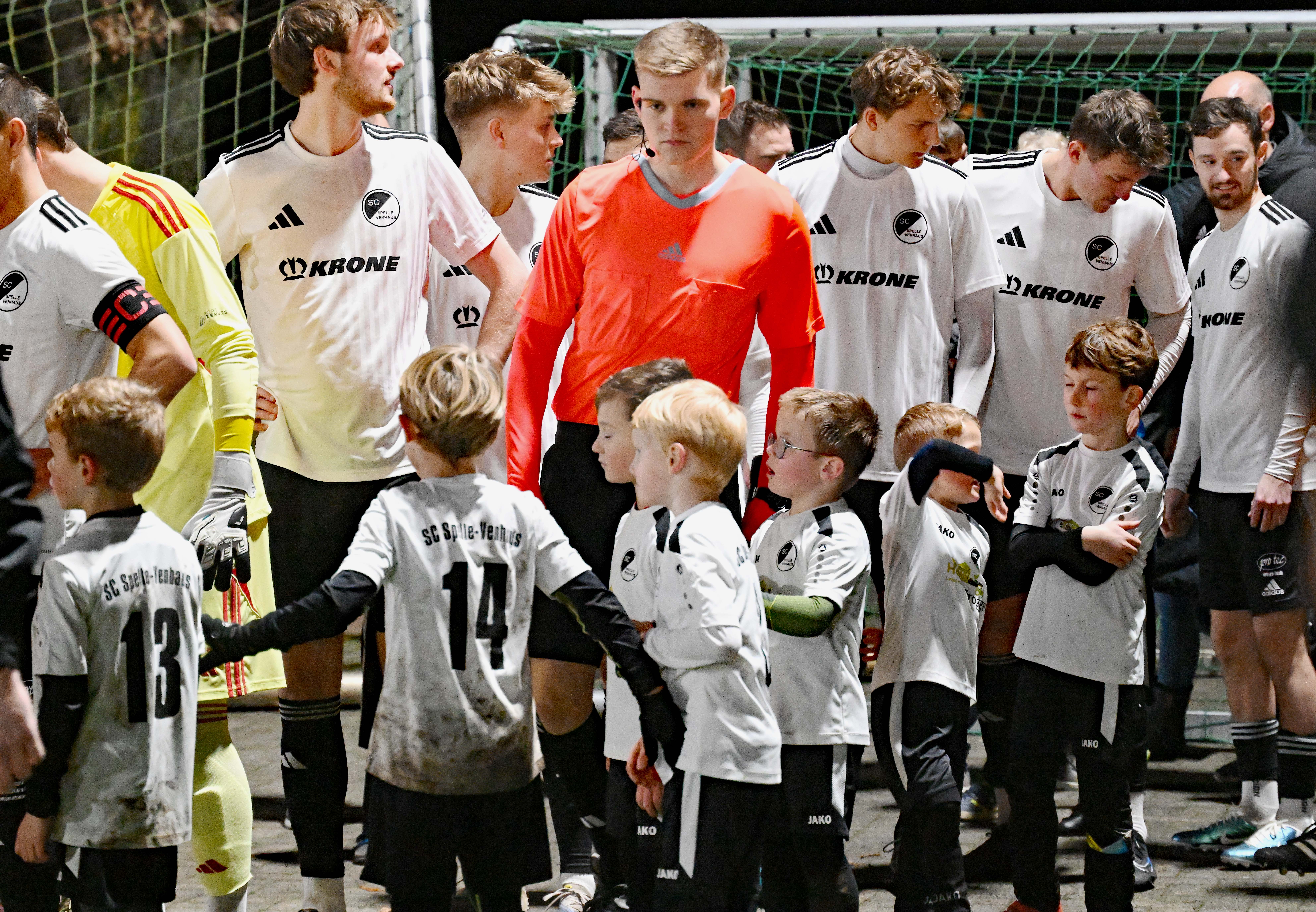 Die Minikicker des FC Eintracht Rheine und des SC Spelle-Venhaus hatten beim Heimspiel des SCSV gegen den Heeslinger SC ihren großen Auftritt. Sie begleiteten die Mannschaften der niedersächsischen Oberligisten vom Spielfeldrand bis zum Mittelkreis und durften sich über den Beifall der Zuschauer freuen. Der Gastgeber feierte beim 6:2 auf Kunstrasen den zweithöchsten Saisonsieg.