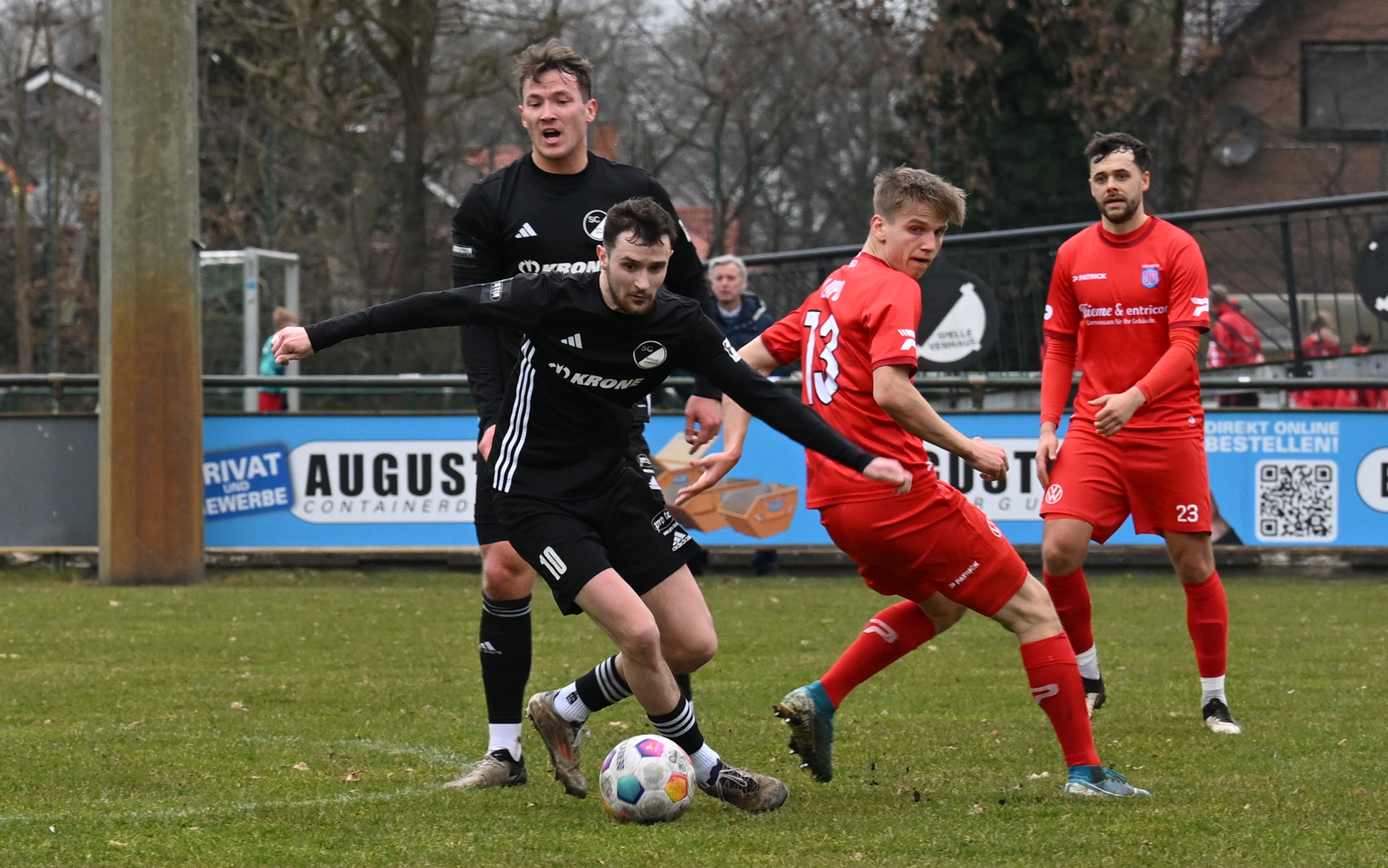 Bewährt hat sich bereits über Monate der gut besetzte, große Kader. So konnten die Ausfälle etlicher Spieler kompensiert werden. In der Abwehr fielen zuletzt Jan-Hubert Elpermann und Jan Popov aus, der gerade wieder ins Training eingestiegen ist. Deren Part übernahmen Jost Krone, Jan-Luca Ahillen oder Luca Tersteeg, der aus dem Mittelfeld zurückgezogen wurde. Auch in der Offensive wechselten die Aufstellungen. „Wir haben viele gute Jungs, und die, die jetzt auf dem Platz standen, die machen es richtig gut“, erklärt der Trainer.
