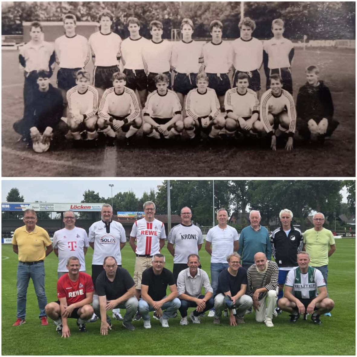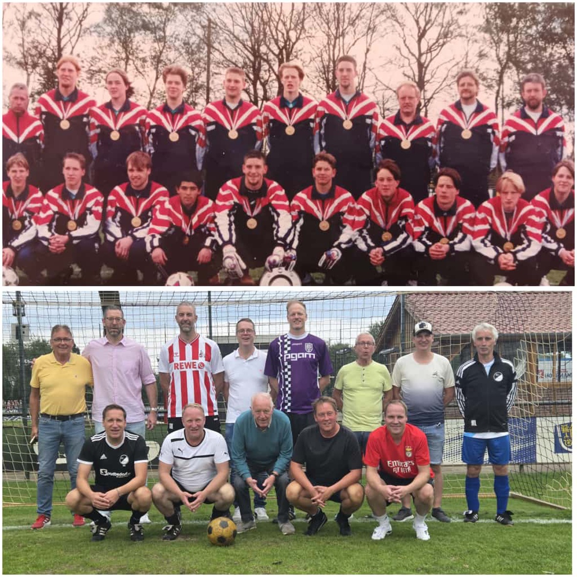 - Das alte Mannschaftsfoto 1989/90 und darunter ein aktuelles Foto.